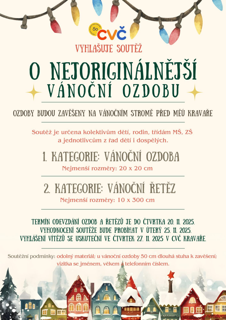 - Slavnostní vyhlášení vítězů: ve čtvrtek 27. listopadu 2025 v CVČ Kravaře