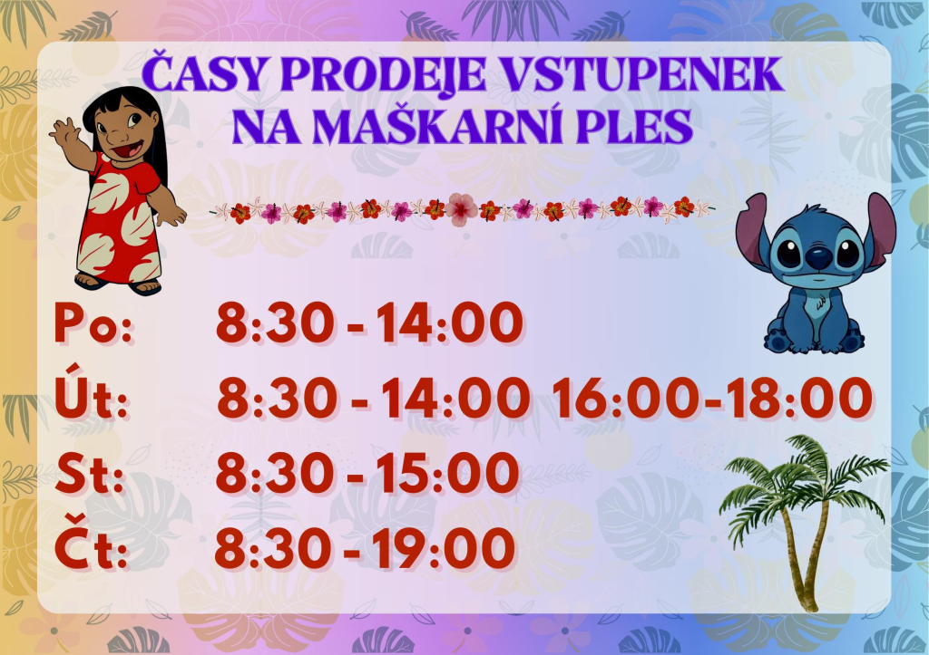 ČASY PRODEJE VSTUPENEK NA DĚTSKÝ MAŠKARNÍ PLES: